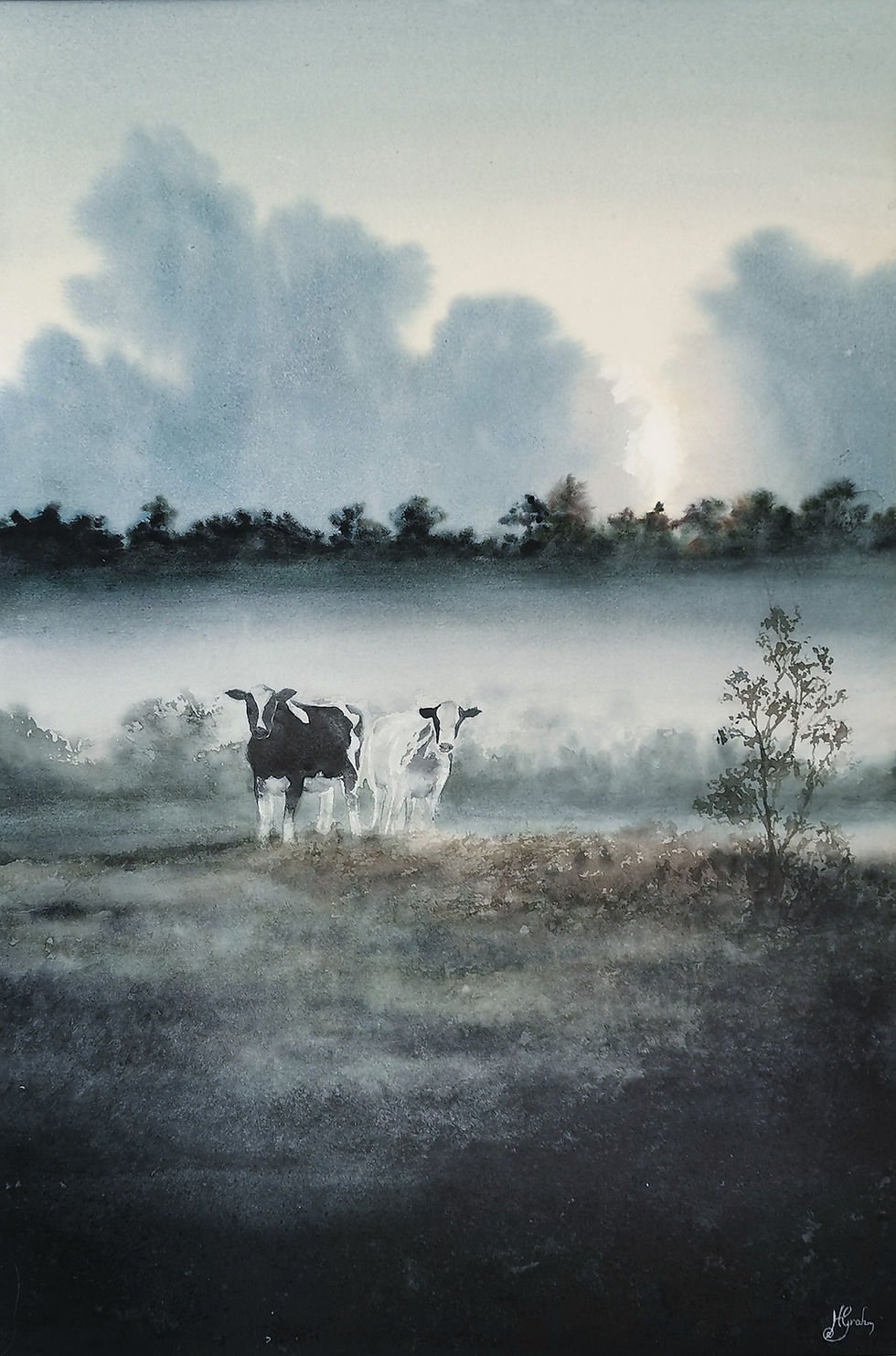 Konsttryck på akvareller som är målade med önskan att utforska skönheten i naturen i en mjuk, fantasieggande realism. Närvaro, stillhet, rymd. Som ett fönster in i en scen där du får vara med och förundras över naturen under ett skimrande himmelsljus.